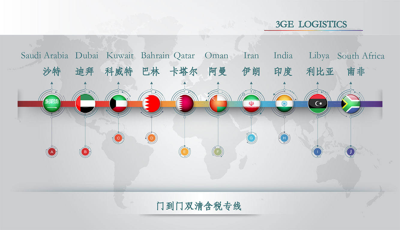 三其現具有阿聯(lián)酋、沙特、科威特、卡塔爾、阿曼、巴林、伊朗、印度、利比亞、南非、等多條專(zhuān)線(xiàn)優(yōu)勢,提供完善的門(mén)到門(mén)雙清含稅服務(wù),為廣大客戶(hù)定制專(zhuān)業(yè)的個(gè)性化物流解決方案。